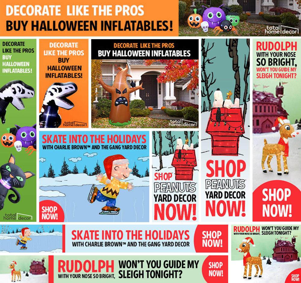 The marketing team regularly requires graphics for the website as well as social media, and I usually don’t have much time to handover the deliverables. I happen to like working on these, partially because they help break up a day, but mostly because I have free rein to take them in any direction I want. Considering the company sells holiday decor, I tend to lean on humor, fun and nostalgia.