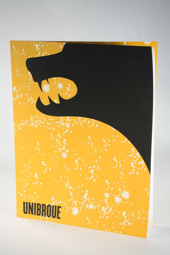 These are some examples of the branding I did for another project in my Branding Identity class. We were to pick a brand, any brand, and create a brand manual. I chose Unibroue, a brewing company based in Quebec that makes really delicious beer. I've been interested in their branding for a couple years now. They have a distinctive style; it's very whimsical, and has a lot of fantasy elements referring to different legends. In my research, I found that many people love their style, while others absolutely hate it. The labels look like romantic paintings. I thought it would be interesting to go with a more modern approach. I kept some of the fantasy because the different legends tied to their beers is one of the things that makes this brand stand out.